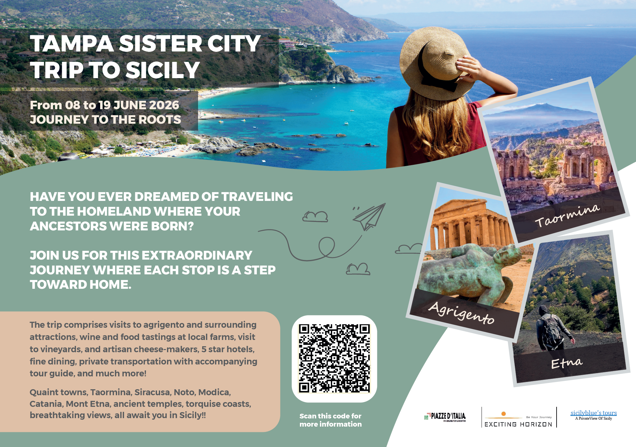A great trip to Sicily is being planned for June 2026 by Tampa Sister Cities. The trip is offered by Tampa-Agrigento Sister Cities Committee through Piazze d'Italia and curated by the Tour Operator Exciting Horizon.